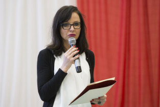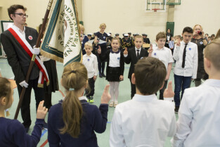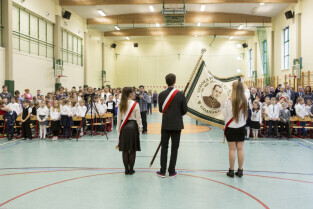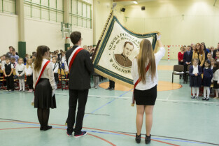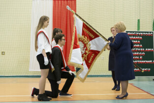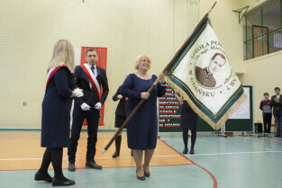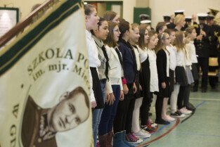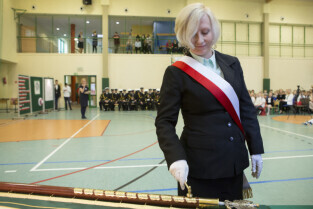 Uroczystość nadania imienia majora Mieczysława Słabego Szkole Podstawowej nr 7 w Gdańsku Złotej Karczmie przy ul. Mjr. Słabego 6. Nz. radna miasta Gdańska Żaneta Geryk