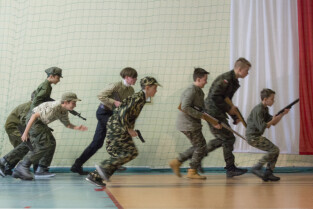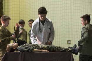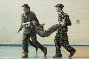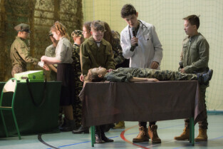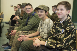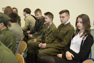 Uroczystość nadania imienia majora Mieczysława Słabego Szkole Podstawowej nr 7 w Gdańsku Złotej Karczmie przy ul. Mjr. Słabego 6. Nz. dyrektor Muzeum Westerplatte Mariusz Wójtowicz-Podhorski