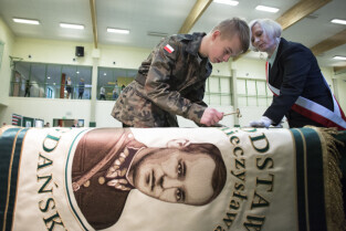 Uroczystość nadania imienia majora Mieczysława Słabego Szkole Podstawowej nr 7 w Gdańsku Złotej Karczmie przy ul. Mjr. Słabego 6