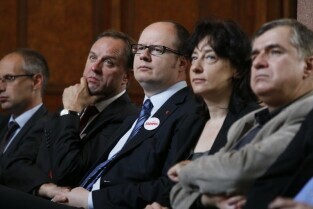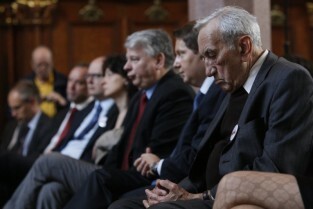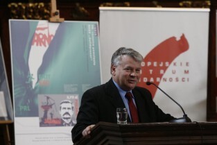 Podsumowanie Roku Historii Najnowszej w edukacji oraz wręczenie nagród w konkursie "Ocal okruchy historii - młodzież buduje muzea". Gdańsk, Dwór Artusa. Nz. Prezydent Gdańska Paweł Adamowicz