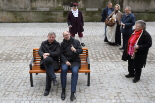 Gdańsk. Uroczyste oddanie do użytku ul. Świetego Ducha. Nz. Ks. Ireneusz Bradtke i Prezydent Gdańska Paweł Adamowicz.