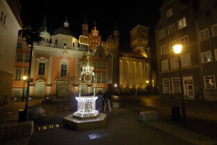 Gdańsk. Odpalamy święta - iluminacje na ulicach Gdańska. Nz. Fontanna Czterech Kwartałów na ul. Grobla.