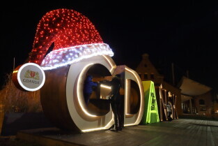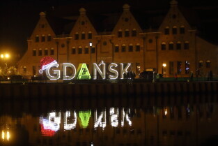 Gdańsk. Odpalamy święta - iluminacje na ulicach Gdańska. Nz. Napis GDAŃSK na Ołowiance.