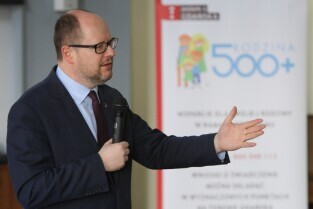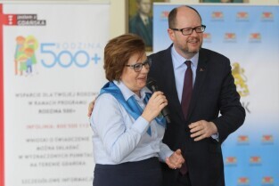 Paweł Adamowicz Prezydent Miasta Gdańska dokonał odprawy pracowników zaangażowanych w wdrażanie i realizację Programu Rodzina 500 plus.