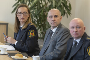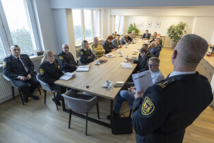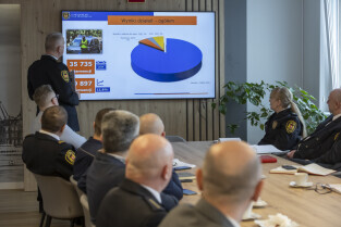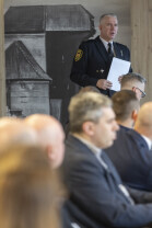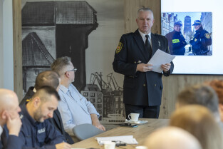 Gdańsk. Odprawa roczna Straży Miejskiej z udziałem wiceprezydenta Gdańska Piotra Borawskiego.