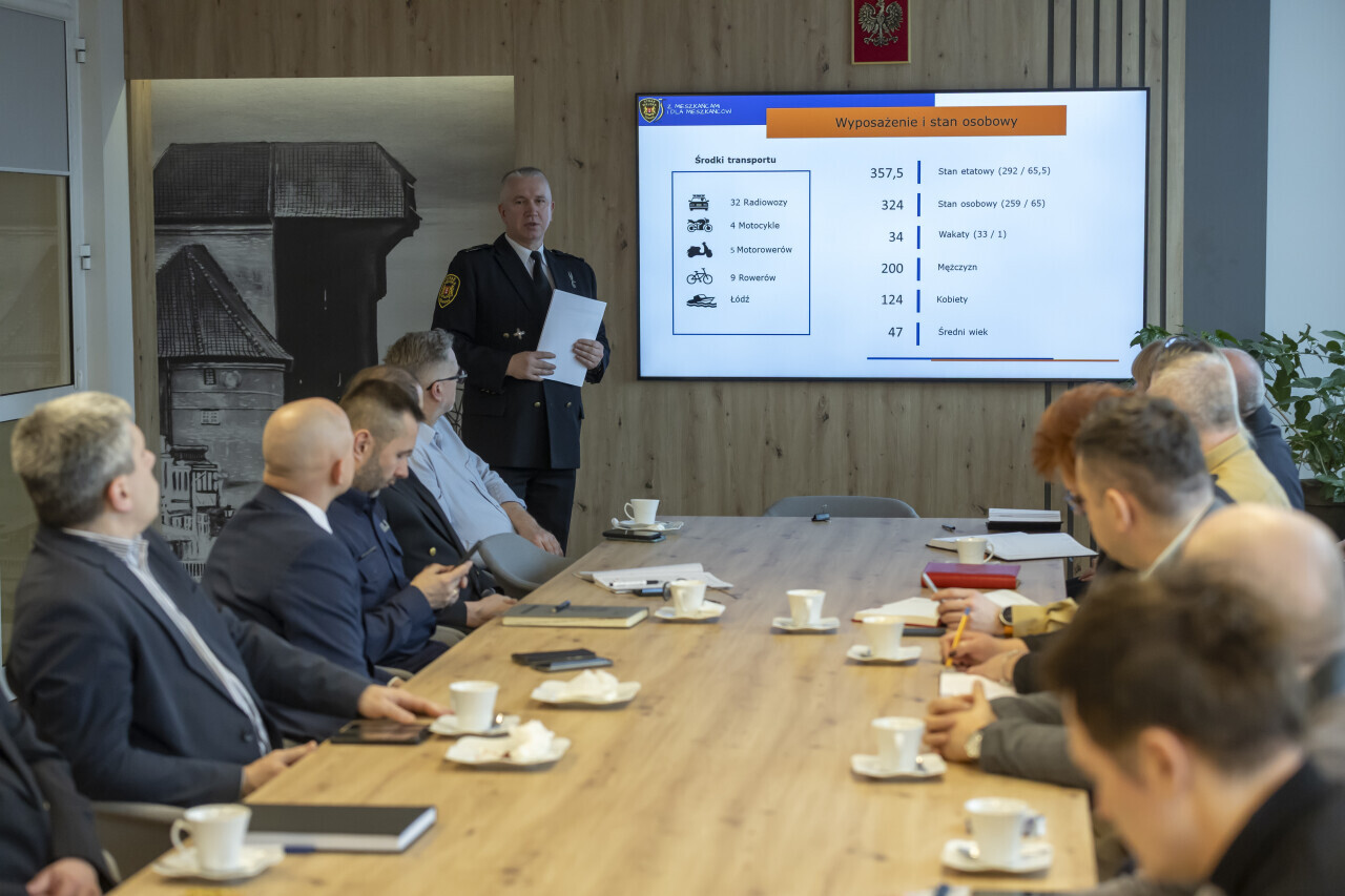 Gdańsk. Odprawa roczna Straży Miejskiej z udziałem wiceprezydenta Gdańska Piotra Borawskiego.