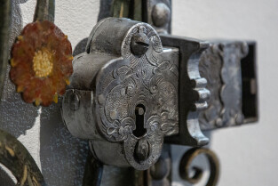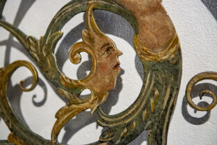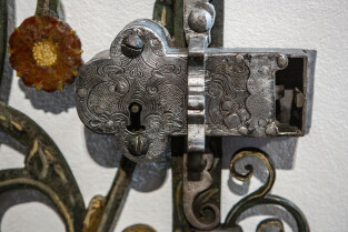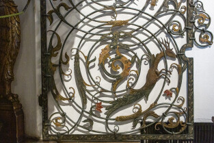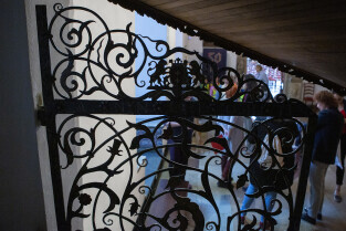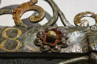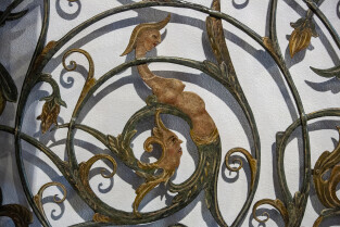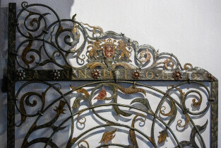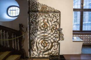 Gdańsk, Ratusz Głównego Miasta, oddział Muzuem Gdańska. Prezentacja XVII-wiecznej kraty, która dzięki laserowej renowacji odzyskała oryginalne polichromie z 1683 r.