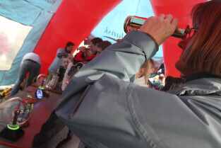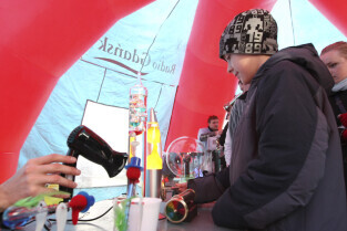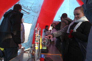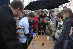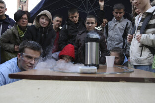 Odsłonięcie Kolumny Meteorologicznej Daniela Gabriela Fahrenheita. Gdańsk, Długi Targ. Nz. towarzyszący wydarzeniu pokaz doświadczeń fizycznych.
