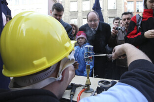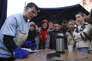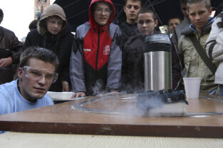 Odsłonięcie Kolumny Meteorologicznej Daniela Gabriela Fahrenheita. Gdańsk, Długi Targ. Nz. towarzyszący wydarzeniu pokaz doświadczeń fizycznych.