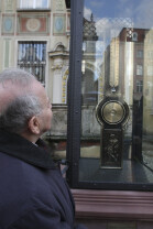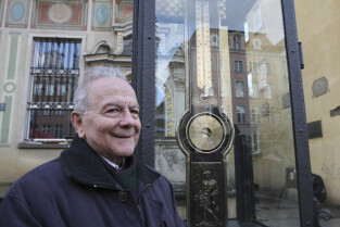 Odsłonięcie Kolumny Meteorologicznej Daniela Gabriela Fahrenheita. Gdańsk, Długi Targ. Nz. prof. Andrzej Januszajtis