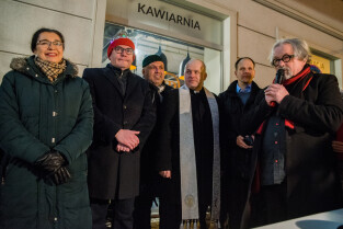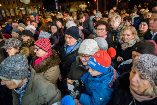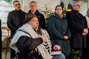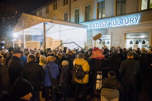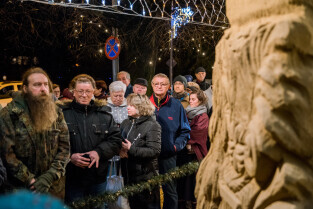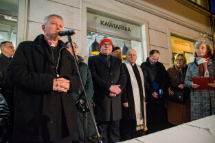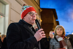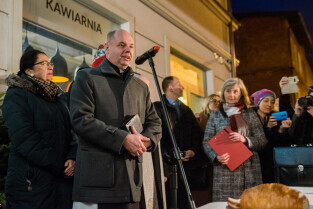 Gdańsk, ul. Opata Jacka Rybińskiego. Odsłonięcie Szopki z Piasku i spotkanie ekumeniczne z duchownymi różnych wyznań - Bądźmy wspólnotą! Nz. Wiceprezydent Gdańska Piotr Kowalczuk