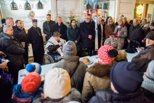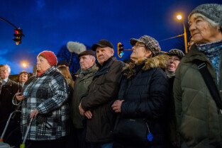 Gdańsk, ul. Opata Jacka Rybińskiego. Odsłonięcie Szopki z Piasku i spotkanie ekumeniczne z duchownymi różnych wyznań - Bądźmy wspólnotą! Nz. (po prawej) radny Andrzej Stelmasiewicz