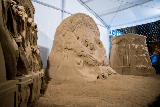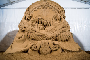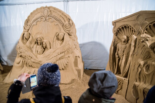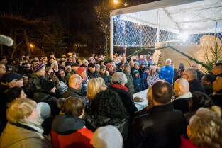 Gdańsk, ul. Opata Jacka Rybińskiego. Odsłonięcie Szopki z Piasku i spotkanie ekumeniczne z duchownymi różnych wyznań - Bądźmy wspólnotą!