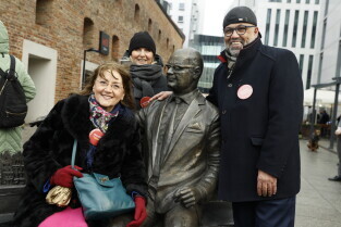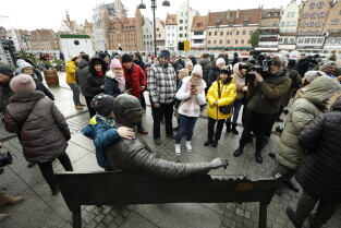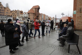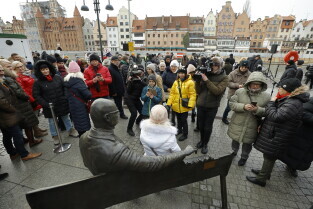 Gdańsk. Odsłonięcie ławeczki Pawła Adamowicza.