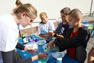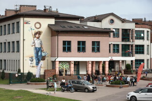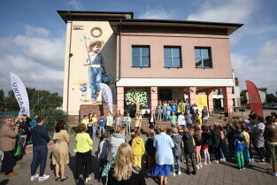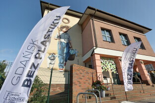 Gdańsk, Szkoła Podstawowa nr. 85. Odsłonięcie muralu w ramach Kampanii Gdańsk bez plastiku.