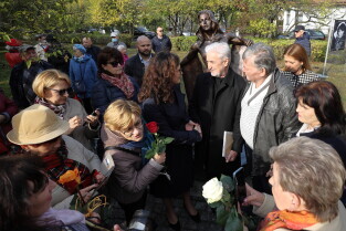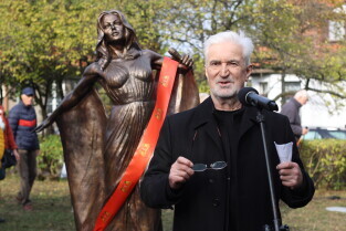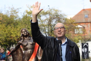 Gdańsk.Odsłonięcie pomnika Ireny Jarockiej. Nz. Michał Sobolewski, mąż artystki.
