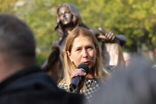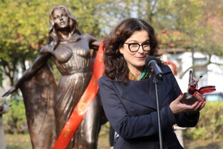 Gdańsk.Odsłonięcie pomnika Ireny Jarockiej. Nz. Aleksandra Dulkiewicz, prezydent Gdańska.