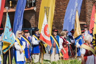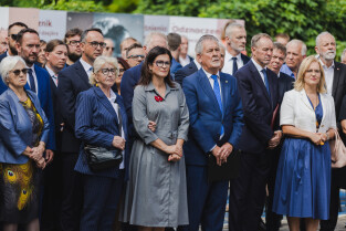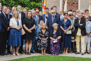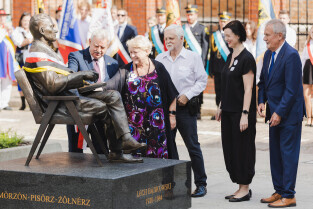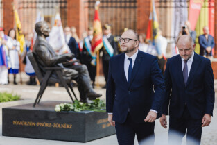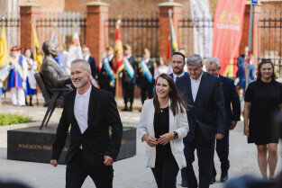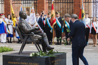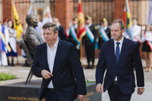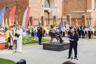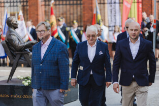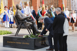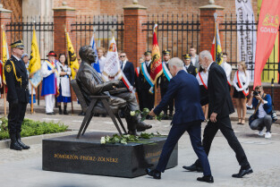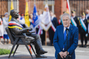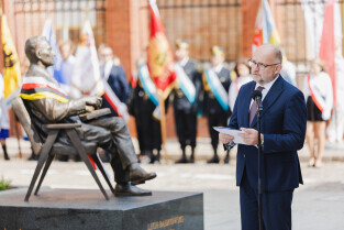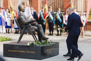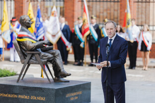 Gdańsk, skwer u zbiegu ulic Świętojańskiej i Minogi. Odsłonięcie pomnika Lecha Bądkowskiego. Nz. Marszałek województwa pomorskiego Mieczysław Struk