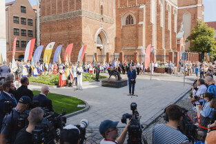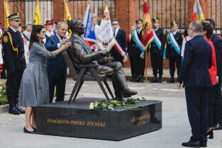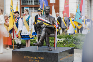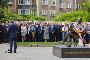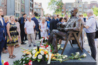 Gdańsk, skwer u zbiegu ulic Świętojańskiej i Minogi. Odsłonięcie pomnika Lecha Bądkowskiego