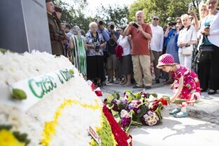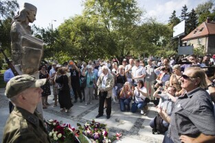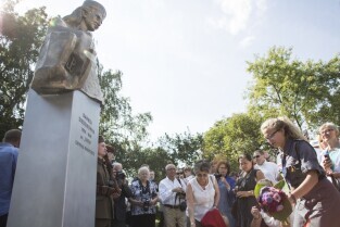 Gdańsk Orunia, ul. Gościnna. Odsłonięcie pomnika Danuty Siedzikówny ps. Inka, sanitariuszki Armii Krajowej zamordowanej przez komunistów w gdańskim areszcie w 1946 r.
