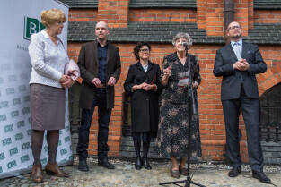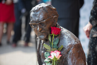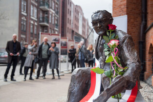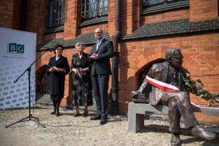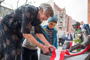 Gdańsk, ul. Wałowa. Odsłonięcie pomnika dyr. Mariana Pelczara