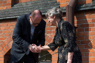 Gdańsk, ul. Wałowa. Odsłonięcie pomnika dyr. Mariana Pelczara. Nz. Prezydent Gdańska Paweł Adamowicz