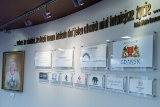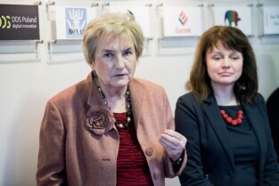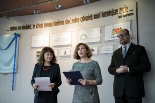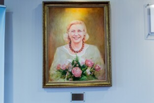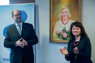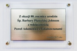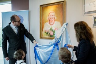 Gdańsk. Odsłonięcie portretu Barbary Piaseckiej Johnson fundatorki siedziby Fundacji - Instytutu Wspomagania Rozwoju Dziecka (IWRD) w Gdańsku.