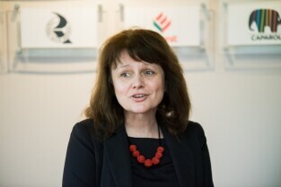 Gdańsk. Odsłonięcie portretu Barbary Piaseckiej Johnson fundatorki siedziby Fundacji - Instytutu Wspomagania Rozwoju Dziecka (IWRD) w Gdańsku. Nz dr Anna Budzińska, dyrektor fundacji