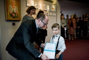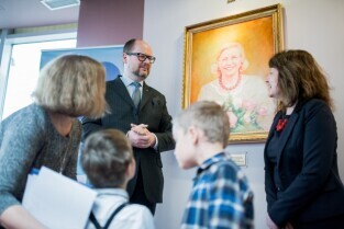 Gdańsk. Odsłonięcie portretu Barbary Piaseckiej Johnson fundatorki siedziby Fundacji - Instytutu Wspomagania Rozwoju Dziecka (IWRD) w Gdańsku. Nz prof. dr hab. Marta Bogdanowicz – psycholog kliniczny dziecięcy i dr Anna Budzińska, dyrektor fundacji