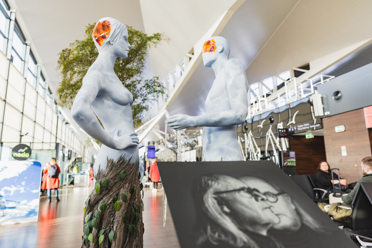 Gdańsk, Port Lotniczy Gdańsk im. Lecha Wałęsy. Odsłonięcie rzeźby „Taniec żywiołów”