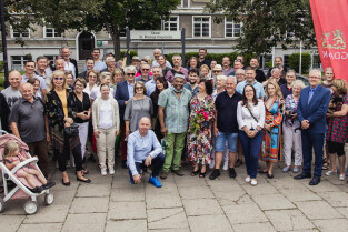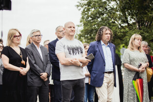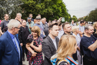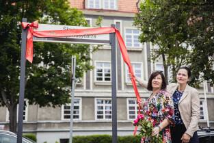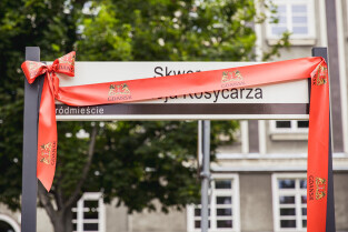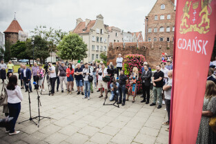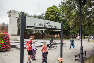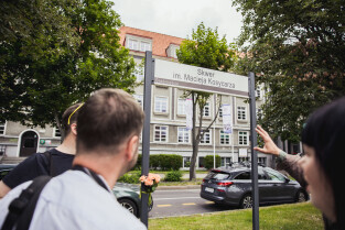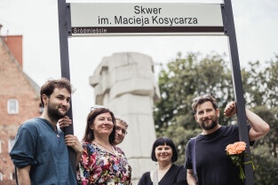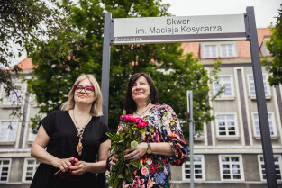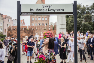 Gdańsk, ul. Podwale Staromiejskie. Odsłonięcie tablicy na skwerze im. Macieja Kosycarza