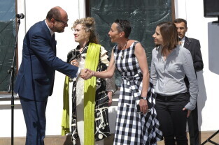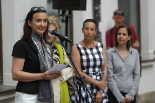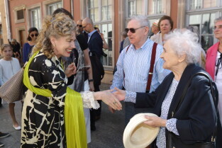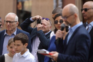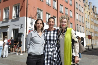 Gdańsk. Uroczyste odsłonięcie tablicy pamiątkowej Franka Meislera. Nz. Lucie Feighan, Michal Meisler-Yehuda i Marit MeislerBarr.