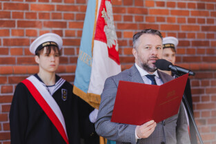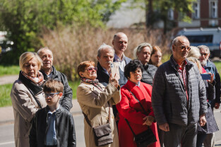 Gdańsk, ul. Uczniowska. Odsłonięcie tablicy upamiętniającej Antoniego Michnę. W wydarzeniu uczestniczyli m. in. : Piotr Kryszewski - dyrektor zarządzający ds. Zielonego Gdańska.