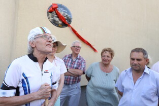 Gdańsk. Odsłonięcie tablicy upamiętniającej Henryka Kowalskiego. Nz. Radny Andrzej Stelmasiewicz.
