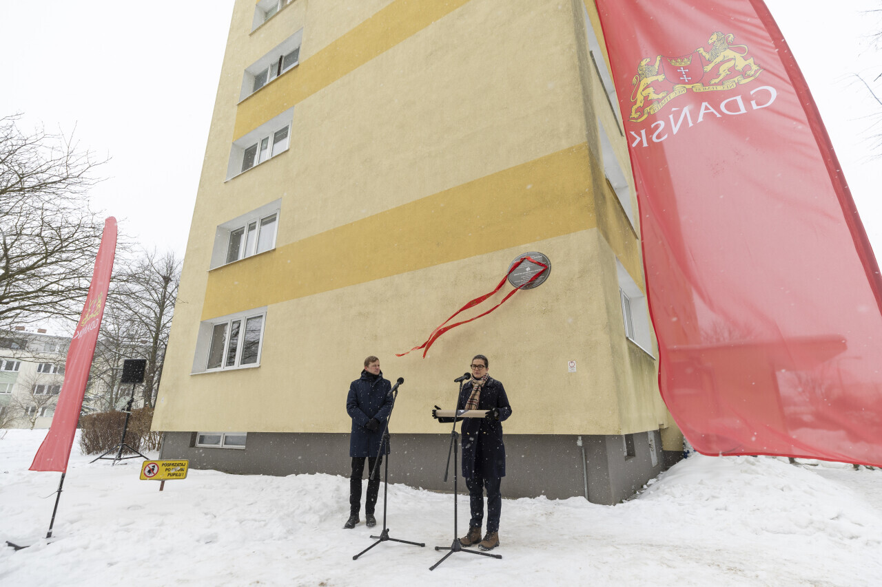 Gdańsk. Odsłonięcie tablicy upamiętniającej Krystynę Janiszewską-Stryszak.