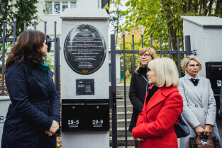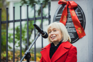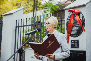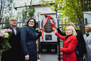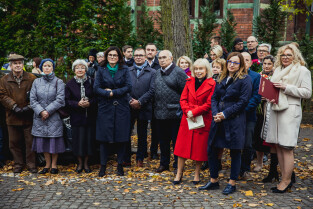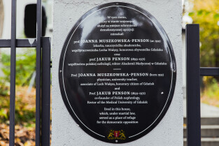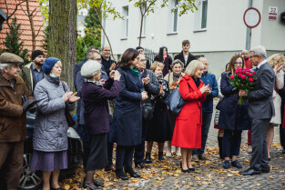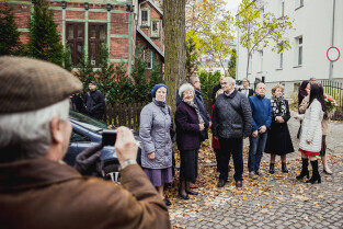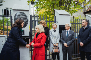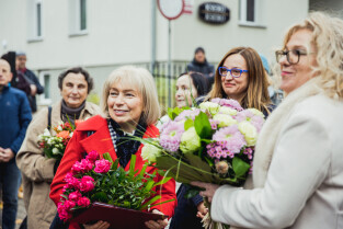 Gdańsk, ul. Tuwima 29. Odsłonięcie tablicy upamiętniającej honorową obywatelkę Gdańska, profesor Joanna Muszkowska-Penson