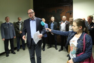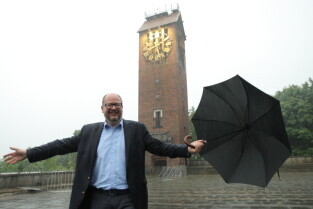 Gdańsk. Schronisko młodzieżowe im. Pawła Beneke. Odsłonięcie zegara na Biskupiej Górce. Nz. Prezydent Gdańska Paweł Adamowicz.