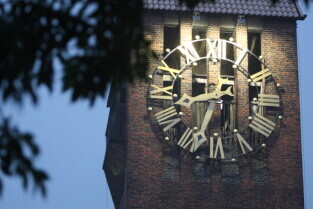 Gdańsk. Schronisko młodzieżowe im. Pawła Beneke. Odsłonięcie zegara na Biskupiej Górce.