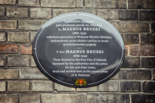 Gdańsk, przy kościele św. Mikołaja. Odsłonięto tablicę upamiętniającą księdza Magnusa Bruskiego