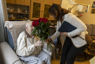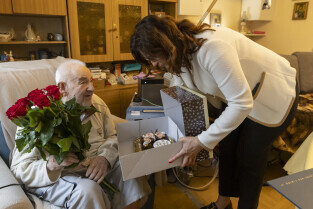 Odwiedziny prezydent Gdańska Aleksandry Dulkiewicz u stulatka pana Kazimierza Żukowskiego