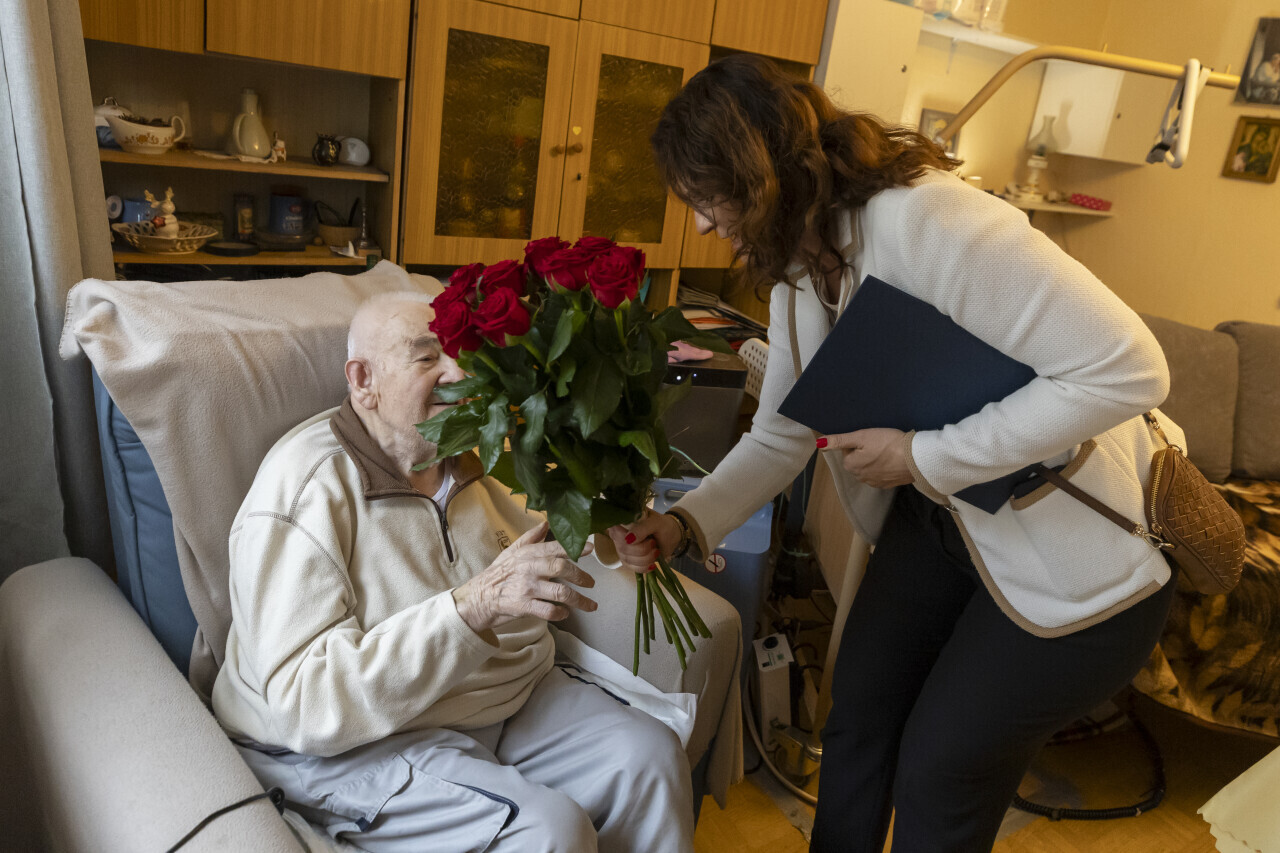 Gdańsk.Odwiedziny prezydent Gdańska Aleksandry Dulkiewicz u stulatka pana Kazimierza Żukowskiego.