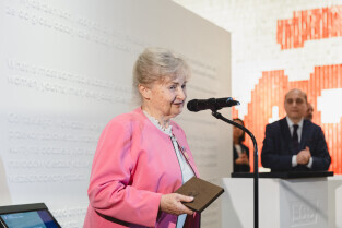Gdańsk, ECS. Odznaka Solidarności i Praw Człowieka. Nz. Grażyna Staniszewska – działaczka opozycji demokratycznej w PRL, organizatorka struktur NSZZ „Solidarność” Regionu Podbeskidzie, uczestniczka obrad Okrągłego Stołu, członkini Kapituły Medalu Wdzięczności ECS