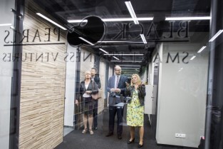 Gdańsk, Olivia Business Centre. Oficjalne otwarcie O4 - przestrzeni innowacji dedykowanej start-upom oraz małym i średnim firmom. Nz. Prezydent Gdańska Paweł Adamowicz podczas zwiedzania przestrzeni O4