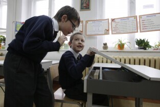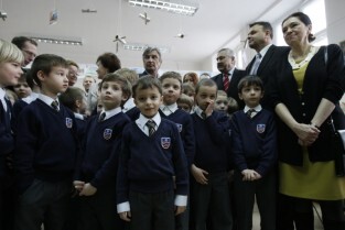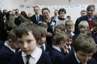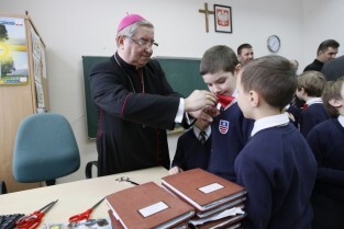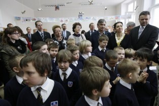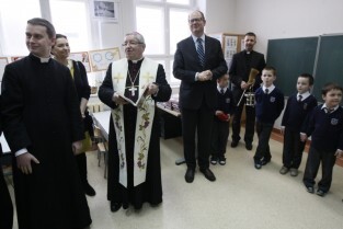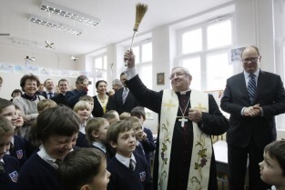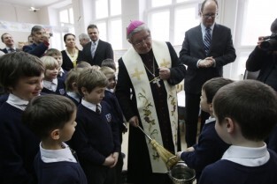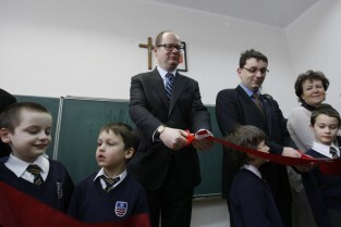 Oficjalne otwarcie wyremontowanej placówki edukacyjnej "Fregata", prowadzonej przez Stowarzyszenie SKWER. Gdańsk Oliwa. Nz. Metropolita Gdański Abp Sławoj Leszek Głódź i Prezydent Gdańska Paweł Adamowicz