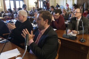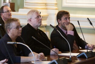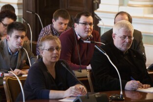 Gdańsk, Nowy Ratusz. Ostatnie posiedzenie Zespołu Konsultacyjnego, podczas którego nastąpiło ogłoszenie wyników głosowania nad wnioskami Budżetu Obywatelskiego 2014. Nz. po środku Radny Miasta Gdańska Dariusz Słodkowski