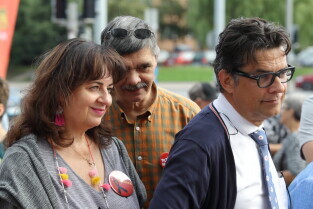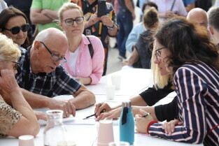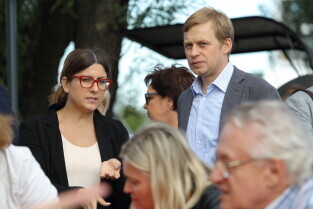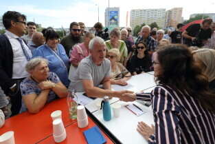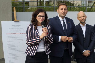 Gdańsk. Okrągły stół. Dzielnica Piecki Migowo. Nz. Prezydent Gdańska Aleksandra Dulkiewicz i wiceprezydenci: Piotr Borawski i Alan Aleksandrowicz.