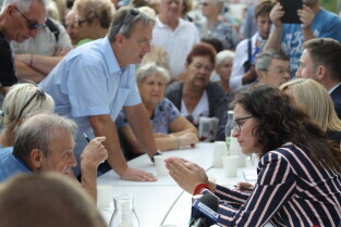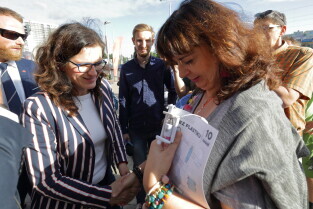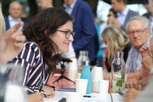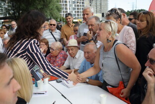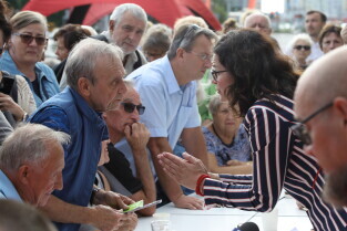 Gdańsk. Okrągły stół. Dzielnica Piecki Migowo. Nz. Prezydent Gdańska Aleksandra Dulkiewicz.