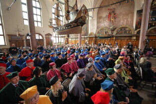 Gdańsk, Dwór Artusa. Olga Tokarczuk odbierała doktorat honoris causa Uniwersytetu Gdańskiego.