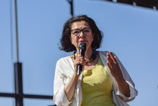 Gdańsk, ul. Modra. Olszynka świętuje 90-lecie przyłączenia do Gdańska. Nz. Prezydent Gdańska, Aleksandra Dulkiewicz