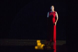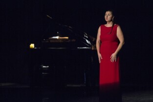 Opera? Si! Prelekcja sceniczna prowadzona przez Jerzego Snakowskiego. Gdańsk, Opera Bałtycka. Nz. Magdalena Molendowska (sopran)